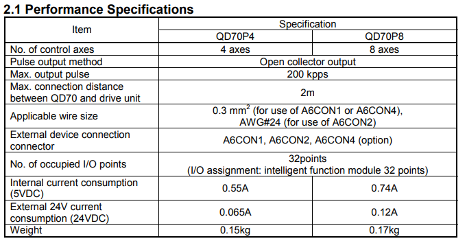 MITSUBISHI QD70P8 Product information and technical parameters: